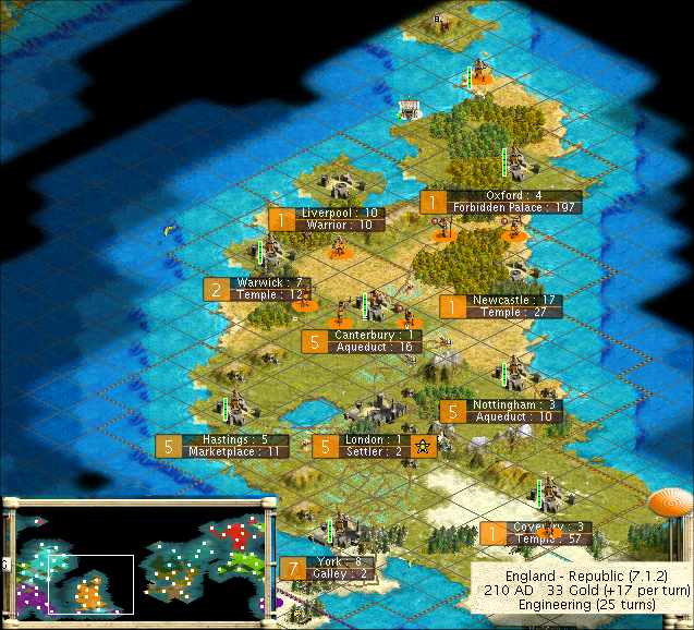 Here's what glorious England looked like by 210 AD, only 16 turns after game start: