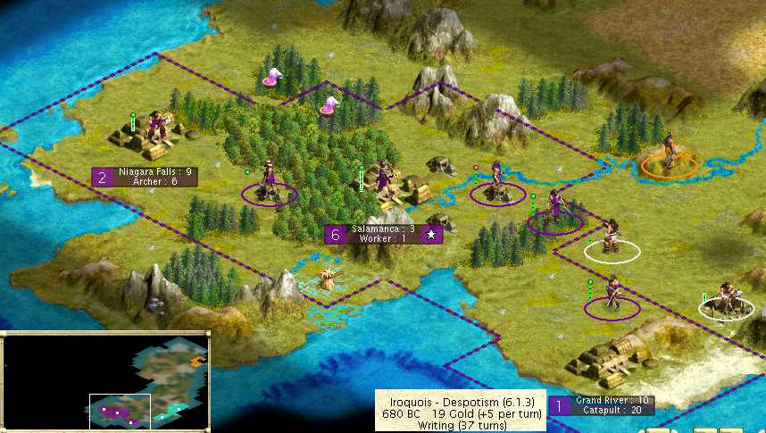 Niagara is going to be purely a military factory: no granary, its first build is a barracks, and after that it's nothing but troops. Grand River equally so, except that this city's mission in life is to build catapults - no wasting time with the barracks.