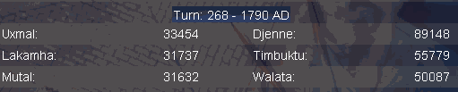 I guess I am the highest population after Mansa. Somehow. What is wrong with Augustus's and Ragnar's cities? Sizes 7 and 8 all over the place this late?