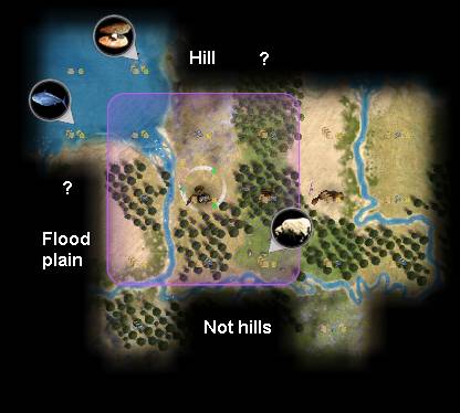 Another food resource, and loads of flood plains! Heck, the settler's current spot is even tempting, with the five flood plains. (If only there were a site that could reach all three food. Next I will complain about Cindy Crawford's mole.)