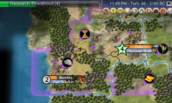 Fifty-nine Great Person Points per turn - in BC YEARS. By the calendar change, Delhi had added all of the Parthenon, Shwedagon Paya, Hanging Gardens, and Chichen Itza (briefly at risk since the AIs went to Code of Laws early).