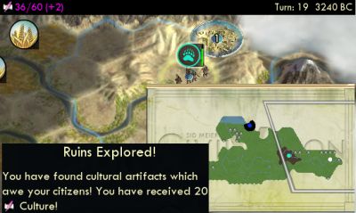 My third pathfinder finally went the other direction for the ruin that had been visible since game start. (I knew I was near the southeast corner and there wouldn't be any other civs in this direction, so this one could wait a bit.)
