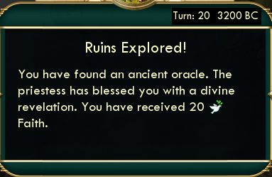 One more helpful ruin checked in, on turn 23 popped survivors to take my city to size 4.