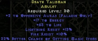 Hot damn, that's a fabulous paladin amulet, dropped from Baal. That's enough to go all the way to endgame for a Holy Shock build.