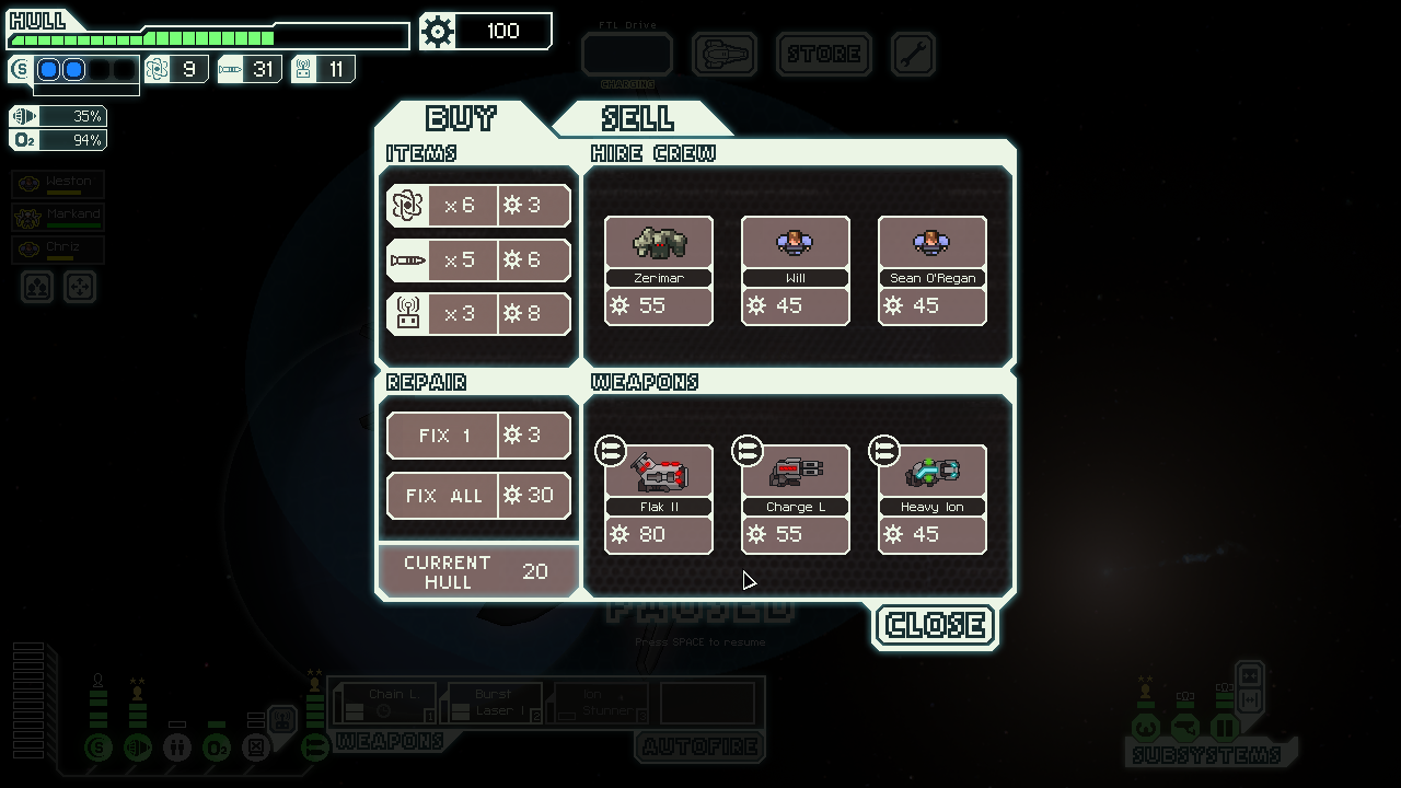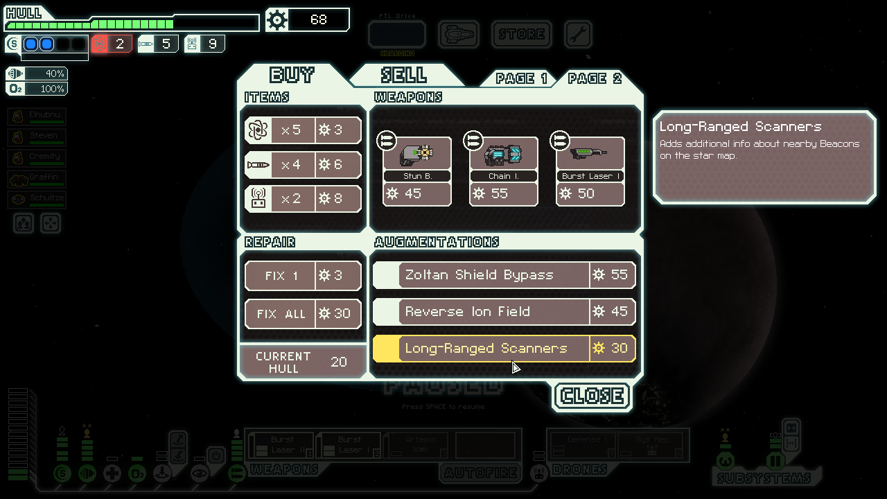 gave a defense drone that could help later? It did, since next store had drone control, then could sell the sys repair drone to buy a Flak!