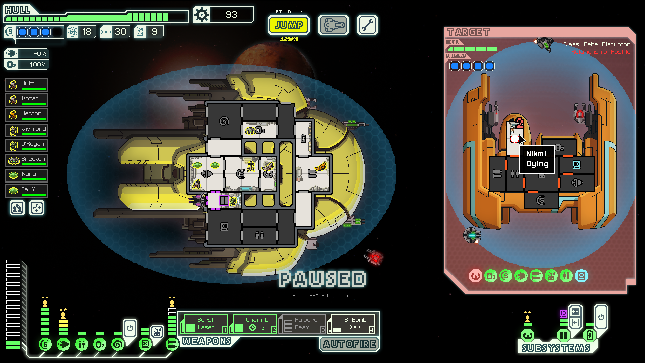 although they too would suffer suffocation after running out of bombs; although dammit I didn't realize to also use this ship for evasion training for my replacement engines crewman.