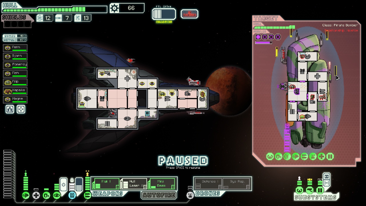 The plight of the shieldless Stealth ships is often cited as the biggest random-number-based swing in FTL. An early enemy drone can cut you to pieces before you ever get to fire your weapons or escape from the fight, in such a way that there's nothing possible to do to save yourself. This can be true, but actually quite rarely, not nearly as much as folks say. Because of the following tactic: