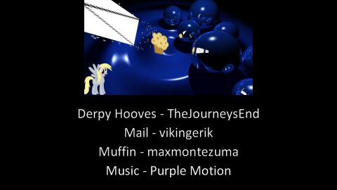 The raytracing scene went through a few ideas, but settled on a good one. At Big Apple Ponycon when I conceived this project, Double Rainboom debuted. The scene with Derpy got huge cheers from the audience. I had to get this fan favorite into my show somewhere. But not early, needs to be properly timed to invoke the "omg ♥ Derpy!" surprise reaction. This segment was perfect: late in the show, allows the slow reveal, Derpy has enough associated objects (mail and muffins) to send through the portal, and finally it even worked to keep the pixelated texture of the objects as a nod to Derpy's popularity in pixel art.